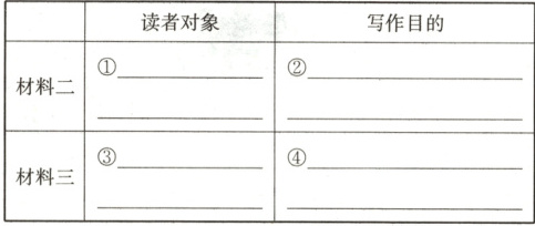 材料三:结合材料三第三段和“让人不安的是,对于这一现象,家长的态度并不一致”第四段可知,读者对象是学生、家长。结合材料三第二段“在AI技术对作业有所‘渗入’的今天,出台这一规定,非常及时,非常有必要”,第五段“教育部以非常明确的新规,列出‘禁区’,利于人们在实践中厘清边界,走出误区,也利于各个环节对照执行,防止跑偏”可知,写作目的是强调写作业不可让AI代劳,提醒人们厘清边界,走出误区。