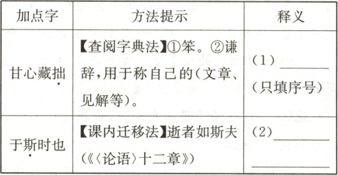 6. 请根据下面表格中的“方法提示”,解释加点字的意思。(2分)