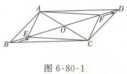 01 如图 6 - 80 - 1,▱ABCD 的对角线 AC,BD 相交于点 O,BD = 12 cm,AC = 6 cm,点 E 在线段 BO 上从点 B 出发以 1 cm/s 的速度运动,点 F 在线段 OD 上从点 O 出发以 2 cm/s 的速度运动。