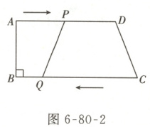 02 如图 6 - 80 - 2,在四边形 ABCD 中,AD//BC,∠B = 90°,AD = 24 cm,BC = 26 cm,动点 P 从点 A 出发沿 AD 方向向点 D 以 1 cm/s 的速度运动,动点 Q 从点 C 出发沿着 CB 方向向点 B 以 3 cm/s 的速度运动。点 P,Q 同时出发,当其中一点到达终点时,另一点随之停止运动,设运动的时间为 t s。