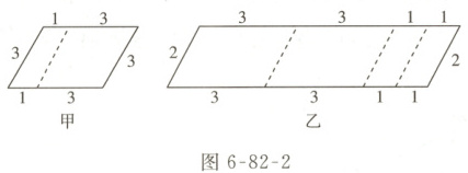 02 如图 6 - 82 - 2,甲、乙是两张不同的平行四边形纸片,将它们分别沿着虚线剪开后,各自要拼接成一个与原来面积相等的菱形,则(