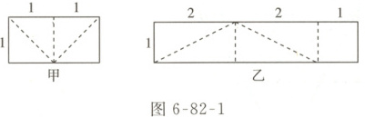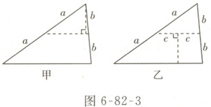 03 如图 6 - 82 - 3 是甲、乙两张完全相同的三角形纸片,将它们分别沿着虚线剪开后,各自要拼成一个与原来面积相等的矩形,则(