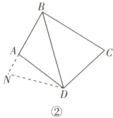 方法二$:$证明$:$延长$BA$到点$N,$使得$BN = BC,$连接$DN,$如图$②.$
