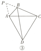 延长$CB$到点$P,$使$BP = BA,$连接$AP,$如图$③.$