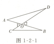 01 (1)如图1-2-1,AB和CD相交于点O,$\angle A=\angle C$,则下列结论中不一定正确的是 (
