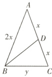 设等腰三角形的腰长AB=AC=2x,BC=y.