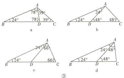 (3)设分割线为AD,相应的角的度数如图③所示.