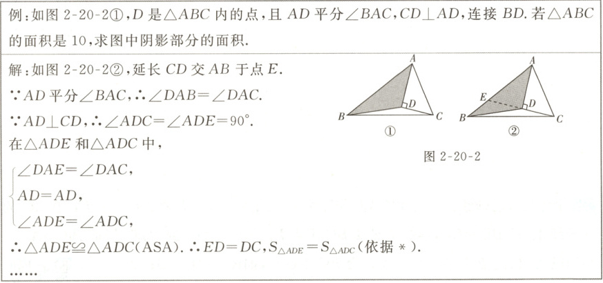 ∴$ED=DC,S_{△ADE}=S_{△ADC}($全等三角形的面积相等$).$
