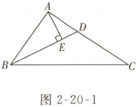 如图 2 - 20 - 1,在△ABC 中,D 为边 AC 上一点,且 BD 平分∠ABC,过点 A 作 AE⊥BD 于点 E。若∠ABC = 52°,∠C = 32°,AB = 5.2,BC = 9.8,求 AE 的长。