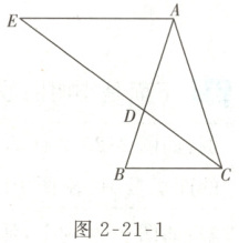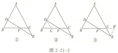 小明的思路:过点$D$作$DG// AE$,交$BC$于点$G$,如图 2-21-2②;