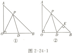 01 如图 2-24-1,在等腰直角三角形 AOB 中,已知 $ AO \perp OB $,点 P,D 分别在 AB,OB 上。