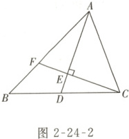 02 已知:如图 2-24-2,在 $ \triangle ABC $ 中,$ AB > AC $,$ \angle B = 45^{\circ} $,D 是 BC 边上一点,且 $ AD = AC $,过点 C 作 $ CF \perp AD $,垂足为 E,与 AB 交于点 F。