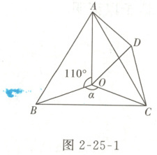 01 如图2-25-1,O是等边三角形ABC内一点,D是△ABC外的一点,∠AOB=110°,∠BOC=α,△BOC≌△ADC,∠OCD=60°,连接OD。