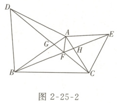 02 如图2-25-2,以△ABC的边AB,AC为边,向外作等边三角形ABD和等边三角形ACE,连接BE,CD相交于点F,连接AF。
