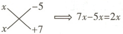 步骤:①竖式分二次项与常数项:$ x^{2}=x · x $,$ -35=(-5) ×(+7) $.