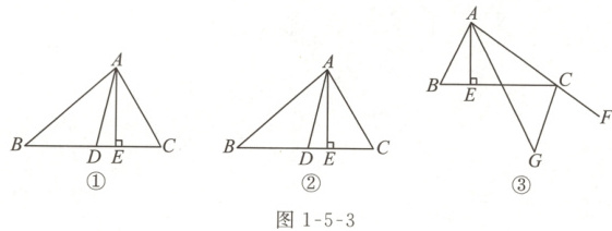 如图 1 - 5 - 3,在$△ABC$中,$AD$是$∠BAC$的平分线,$AE$是$BC$边上的高。