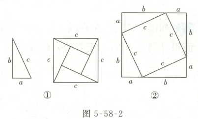 爱动脑筋的小明把这四个全等的直角三角形拼成了另一个更大的正方形(如图5-58-2②),也能验证这个结论,请你帮助小明完成验证的过程.