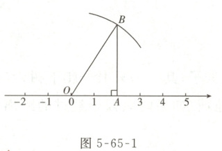 小明学习了在数轴上画出表示无理数的点的方法后,进行了练习:如图5-65-1,首先画数轴,原点为O,在数轴上找到表示数2的点A,然后过点A作AB⊥OA,使AB=3.若以O为圆心,OB长为半径作弧,交数轴正半轴于点P,则点P所表示的数介于(