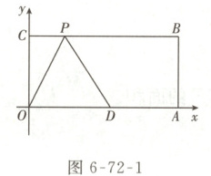 03 如图 6 - 72 - 1,在平面直角坐标系中,$O$ 为坐标原点,四边形 $OABC$ 是矩形,点 $A$,$C$ 的坐标分别为 $A(10,0)$,$C(0,4)$,$D$ 是 $OA$ 的中点,点 $P$ 在 $BC$ 边上运动,当 $\triangle ODP$ 是腰长为 $5$ 的等腰三角形时,点 $P$ 的坐标为