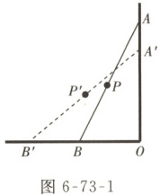 01 如图 6 - 73 - 1,一根竹竿 $ AB $ 斜靠在竖直的墙上,$ P $ 是 $ AB $ 的中点,$ A'B' $ 表示竹竿 $ AB $ 沿墙向下滑动过程中的某个位置,则 $ OP $ 的长度在竹竿 $ AB $ 滑动过程中的变化情况是(