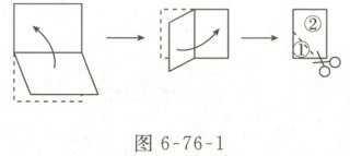 01 如图 6 - 76 - 1,将一张矩形纸片对折再对折,然后沿着图中的虚线剪下,得到①②两部分,将①展开后,得到的四边形是