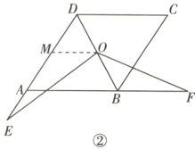 (2)如图②,当点 $E$,$F$ 分别在 $DA$,$AB$ 的延长线上时,试探究线段 $AE$,$BF$,$AB$ 之间的数量关系.