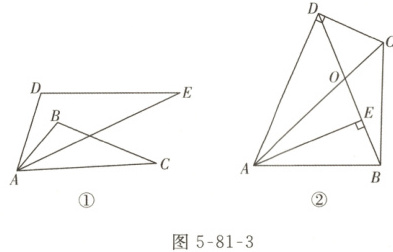 03 如图5-81-3,将△ABC绕点A逆时针旋转α后,△ABC与△ADE构成位似图形,我们称△ABC与△ADE互为“旋转位似图形”.