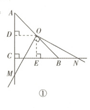 (1)OM=ON.理由:如图①,过点O作OD⊥AC,OE⊥CB,垂足分别为D,E,