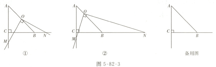 03 如图 5 - 82 - 3,在 $Rt\triangle ABC$ 中,$AC = BC$,$\angle ACB = 90^{\circ}$,点 $O$ 在线段 $AB$ 上(点 $O$ 不与点 $A$,$B$ 重合),且 $OB = kOA(k > 0)$,点 $M$ 是 $AC$ 延长线上一点,作射线 $OM$,将射线 $OM$ 绕点 $O$ 逆时针旋转 $90^{\circ}$,交射线 $CB$ 于点 $N$。