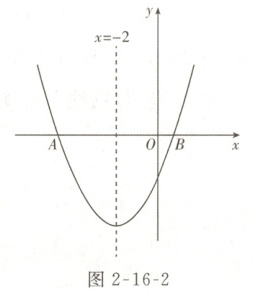 02 如图 2 - 16 - 2,抛物线$y=ax^{2}+bx+c(a≠0)$的对称轴是直线$x=-2$,并与$x$轴交于$A$,$B$两点,若$OA=5OB$,给出下列结论:①$abc>0$;②$(a+c)^{2}-b^{2}=0$;③$9a+4c<0$;④若$m$为任意实数,则$am^{2}+bm+2b\geqslant4a$。其中正确的个数是(