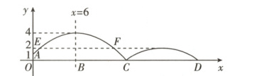 根据题意知$CD = EF$,$\therefore -\frac{1}{12}(x - 6)^{2} + 4 = 2$,