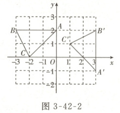 02 如图 3 - 42 - 2,在平面直角坐标系中,△ABC 绕旋转中心顺时针旋转 90°后得到△A'B'C',则其旋转中心的坐标是_。