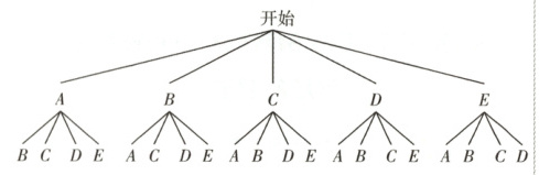 (2)画树状图:(用 A,B 表示能打开教室前门锁的钥匙,C,D,E 表示不能打开教室前门锁的钥匙)