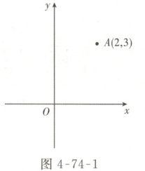 01 如图 4 - 74 - 1,在平面直角坐标系 $ xOy $ 中,已知点 $ A(2,3) $,在坐标轴上找一点 $ P $,使得 $ \triangle AOP $ 是等腰三角形,则这样的点 $ P $ 共有