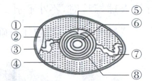 15. 鸟卵的结构特征是鸟类适应陆地生活的重要原因之一。鸟卵结构(如图)中为胚胎发育提供营养的是(