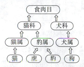 12.B 【解析】生物学分类等级 生物分类等级从大到小依次为界、门、纲、目、科、属、种,分类等级越小,共同特征越多[关键点],题中猫和虎同科但不同属,亲缘关系较近,但并非最近,A不符合题意;虎、豹同科同属,分类等级最小,亲缘关系最近,共同特征最多,B符合题意;豹、猫同科但不同属,亲缘关系次于同属物种,C不符合题意;虎、狗不同科,亲缘关系最远,共同特征最少,D不符合题意。