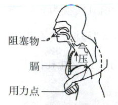 15. 若呼吸道被异物阻塞,危急情况下可采用海姆立克急救法实施救助(如图)。下列对施救部位及施救原理的分析,正确的是(