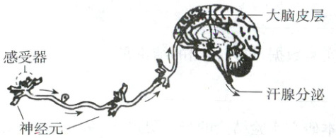 D.辣的物质刺激感受器产生神经冲动,神经冲动沿反射弧传至汗腺,引起汗腺分泌汗液