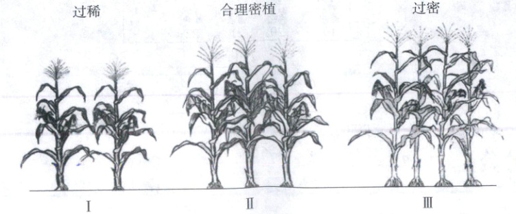 (4)复盘反思:玉米籽粒中的有机物主要来自植物的(填生理过程),其反应式是_。小组成员在种植玉米时发现,种植株距不同,玉米的产量不同(如图乙)。请分析图乙中,相同单位面积上,Ⅱ组植株合理密植产量高的原因:_。