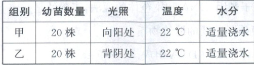 7.A【解析】生物实验变量 本实验探究的是“影响植物生长的环境因素”,由表格中的信息可知,实验的光照不同,其余变量均一致,因此本实验的变量是光照,A符合题意。
