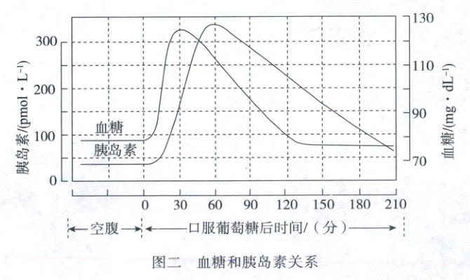 (3)根据相关信息,分析图二中血糖浓度变化的原因:口服葡萄糖后血糖升高,_______。