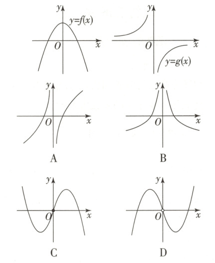 5.D【详解】因为$y = \frac{f(x)}{g(x)}$的定义域是函数$y = f(x)$与$y = g(x)$定义域的交集$(-\infty, 0) \cup (0, +\infty)$,故排除C;由图可知函数$y = f(x)$与$x$轴有两个交点,设右侧交点为$(b, 0)$,函数图象与$y$轴交点为$(0, a)$,则$x \in (0, b)$时,$f(x) > 0$且$g(x) < 0$,所以$\frac{f(x)}{g(x)} < 0$,排除B;$x \to 0^+$时,$f(x) \to a$且$g(x) \to -\infty$,所以$\frac{f(x)}{g(x)} \to 0^-$,排除A。
