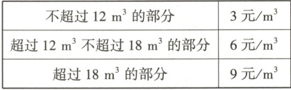 6.B【详解】设此户居民12月用水量为$x m^3$,缴纳的水费为$y$元,则当$x \in [0, 12]$时,$y = 3x \leq 36$元,不符合题意;当$x \in (12, 18]$时,$y = 12 × 3 + 6(x - 12) = 6x - 36$,令$6x - 36 = 82$,解得$x \approx 19.7$,不符合题意;当$x \in (18, +\infty)$时,$y = 12 × 3 + 6 × 6 + 9(x - 18) = 9x - 90 = 82$,解得$x \approx 19.1$,符合题意。综上,此户居民12月用水量约为$19.1m^3$。