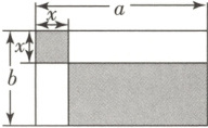 2. 如图所示,一个长为$a$、宽为$b$的长方形,被平行于边的两条直线所割,其中长方形的左上角是一个边长为$x$的正方形。