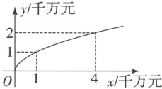 9. 【题型一、三、五】某公司已成功研发$A$,$B$两种芯片,研发芯片前期已经耗费资金$2$千万元,现在准备投入资金进行生产。经市场调查与预测,生产$A$芯片的净收入与投入的资金成正比,已知每投入$1$千万元,公司获得净收入$0.25$千万元;生产$B$芯片的净收入$y$(千万元)是关于投入资金$x$(千万元)的幂函数,其图象如图所示。