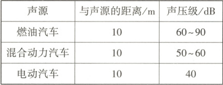 已知在距离燃油汽车、混合动力汽车、电动汽车$10m$处测得实际声压分别为$p_{1},p_{2},p_{3}$,则(