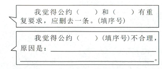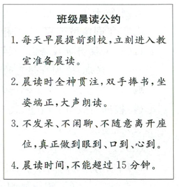 4. (2025·平阳县)制定班级公约,可以让班级变得更加美好。五年级(1)班全体同学经过讨论,给班级晨读拟定了几条班级公约(见右图),其中存在不合理的地方,请讨论并修改。