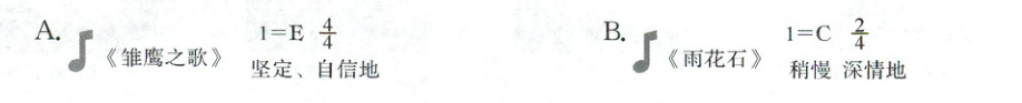 (2)为了让朗诵效果更好,你觉得音乐书上可以作为背景音乐的曲子是()。