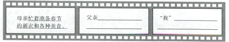 ②过年的前几天,最忙的是母亲了。她忙着(打点 打扮)我们过年穿的新衣鞋帽,还有一家大小半个月吃的肉。因为那里的习惯,从正月初一到十五是不宰猪卖肉的。我看见母亲系起围裙、挽上袖子,往大坛子里装上大块大块的喷香的裹满“红糟”的糟肉,还有用酱油、白糖和各种香料煮的卤肉,还蒸上好几笼屉的红糖年糕……当母亲做这些事的时候,旁边站着的不只有我们几个馋孩子,还有在旁边帮忙的厨师傅和余妈。父亲呢,就为放学的孩子们准备新年的娱乐。在海军学校上学的不但有我的堂哥哥,还有表哥哥。真是“一表三千里”,什么姑表哥,舅表哥,姨表哥,至少有七八个。父亲从烟台市上买回一套吹打乐器,弹奏起来,真是热闹得很。只是我挤不进他们的乐队里去!我只能白天放些父亲给我们买回来的鞭炮,晚上放些烟火。大的是一筒一筒的放在地上放,火树银花,璀璨得很!我最喜欢的还是一种最小、最简单的“滴滴金”。那是一条小纸捻,卷着一点火药,可以拿在手里点起来嗤嗤地响,爆出点点火星。