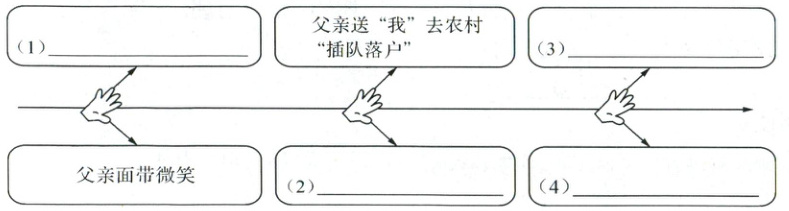 ④父亲第二次送我,是我要去农村“插队落户①”。那天,我提着行李,父亲默默地走在我身边。快分手时,他才呐呐地说:“你自己当心。有空常写信回家。”我上了车,父亲站在车站上看着我。他的脸上带着他常有的那种温和的微笑,只是有一点勉强。我知道,父亲心里并不好受,他是怕我难过,所以尽量不流露出伤感的情绪。车开动了,父亲一边随着车的方向往前走,一边向我挥着手。这时我看见,他的眼睛里闪烁着晶莹的泪光……